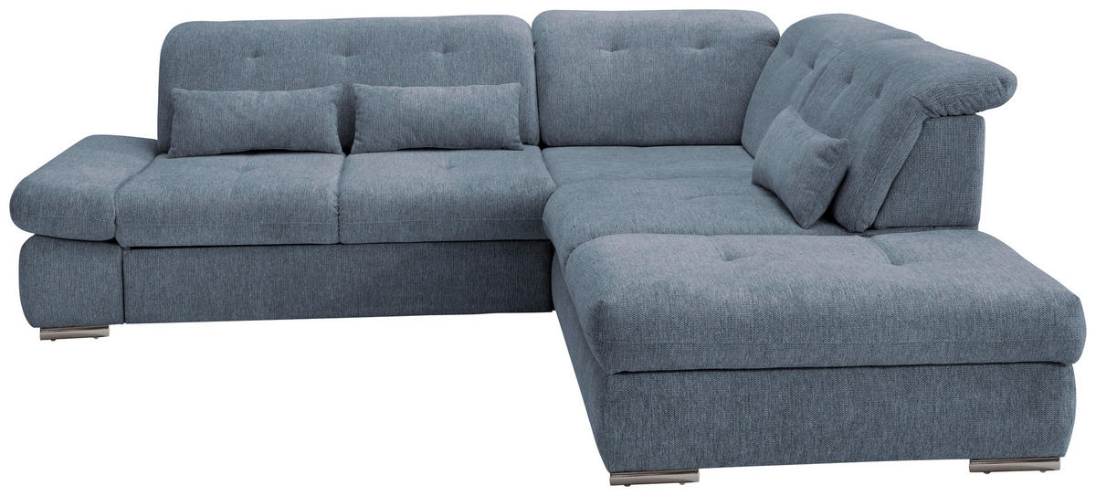 ECKSOFA inkl. Funktion Blau Webstoff Bettkasten, Schlaffunktion, Rücken echt, Kopfteilverstellung, Sitztiefenverstellung