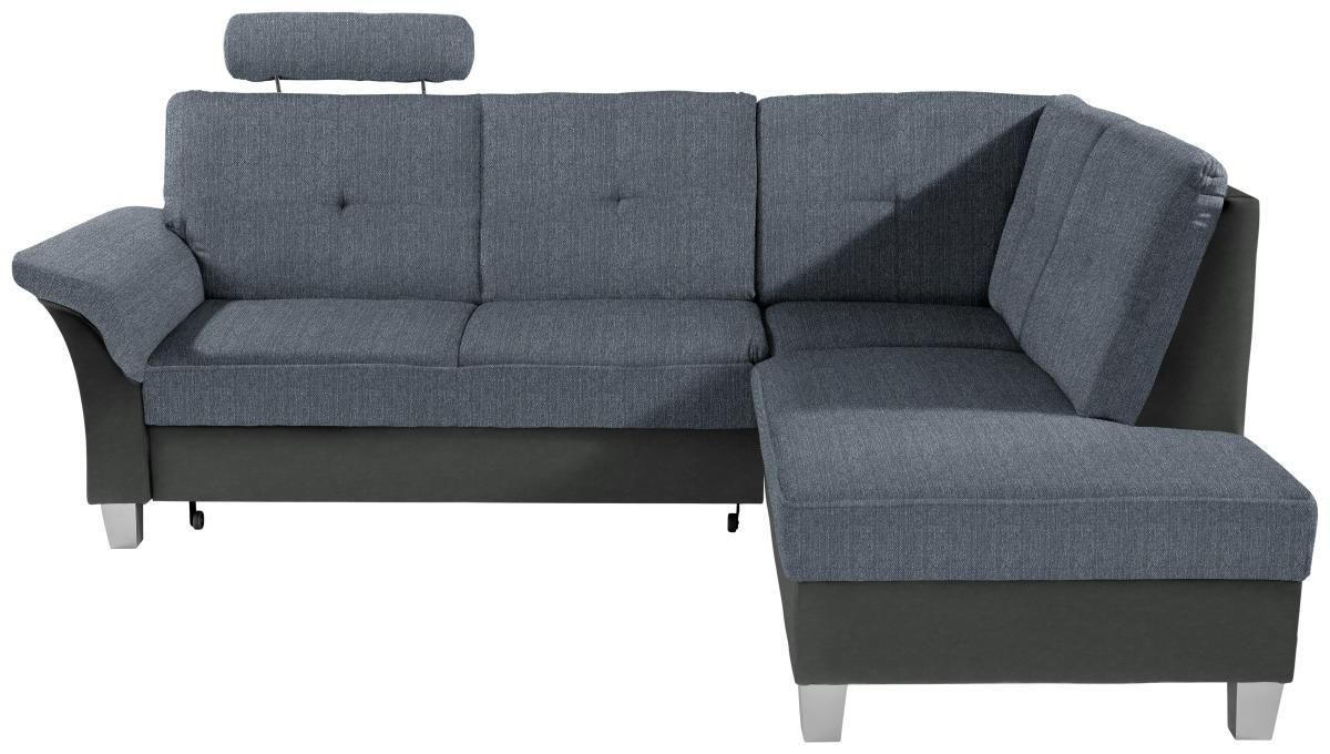 Livetastic ECKSOFA Blau, Graphitfarben Webstoff Bettkasten, Schlaffunktion, Kopfstütze