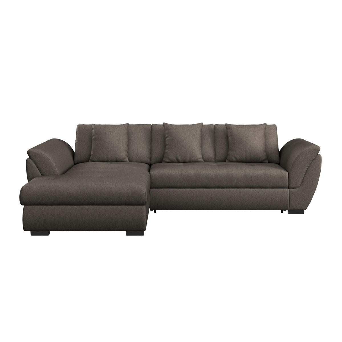 ECKSOFA Graubraun Flachgewebe Rückenkissen, Bettkasten, Schlaffunktion, Rücken echt, Armteilverstellung