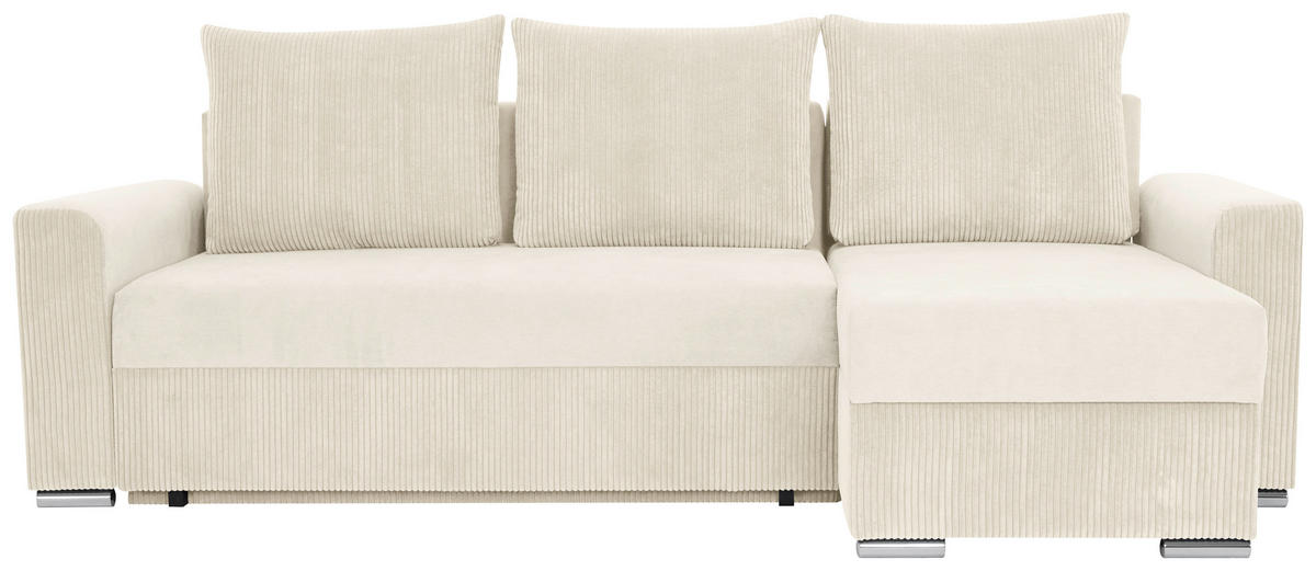 ECKSOFA Creme Cord Rückenkissen, Bettkasten, Schlaffunktion, Liegefläche im Originalstoff
