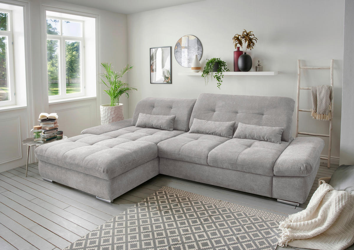 ECKSOFA Dalida Grau Chenille Nierenkissen, Bettkasten, Schlaffunktion, Rücken echt, Armteilverstellung, Kopfteilverstellung, Sitztiefenverstellung, Liegefläche im OriginalstoffLivetasticXXXLutzMehr VariantenMehr Varianten verfügbar2.589,00 €***1.999,00 €Nur online ausgestelltONLINE ONLY