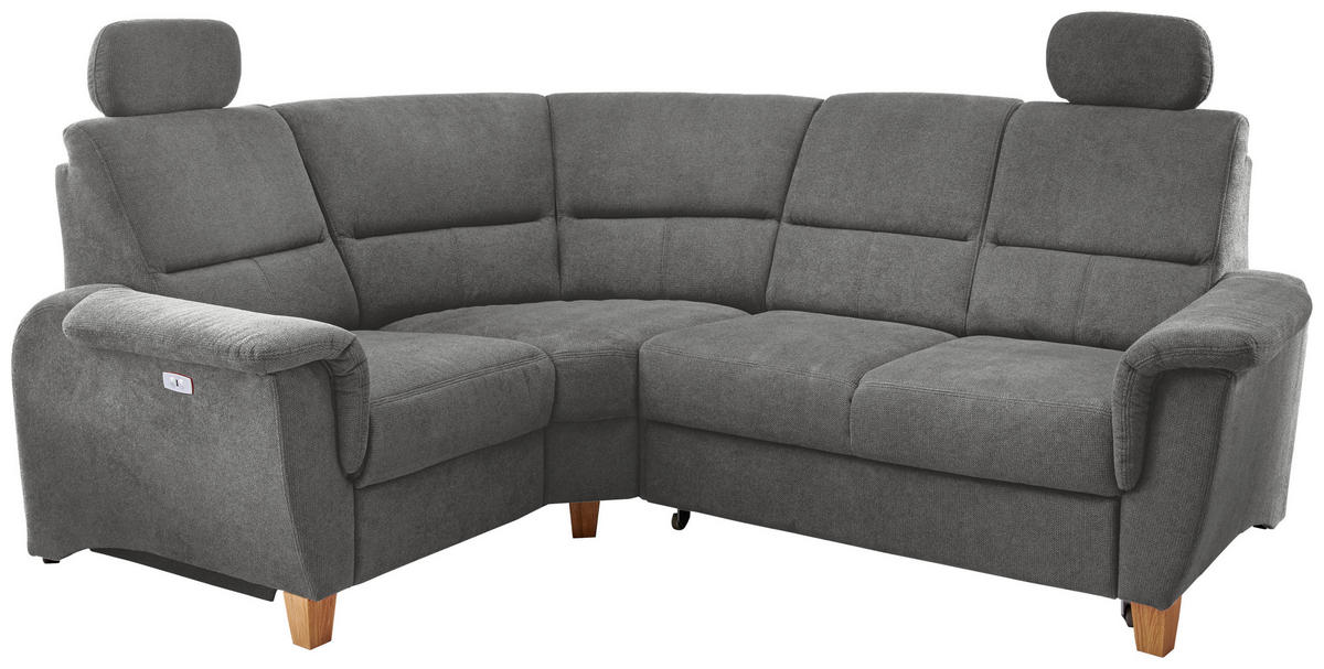 ECKSOFA inkl.Funktionen Grau Webstoff Bettkasten, Schlaffunktion, Rücken echt, Kopfteilverstellung