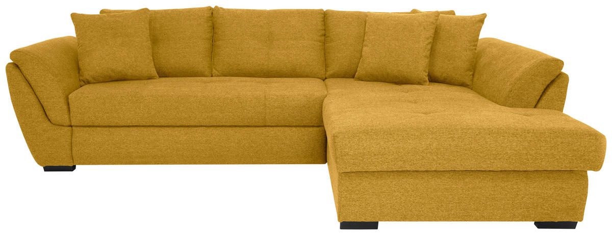 ECKSOFA inkl.Funktionen Dunkelgelb Webstoff Zierkissen, Rückenkissen, Bettkasten, Schlaffunktion