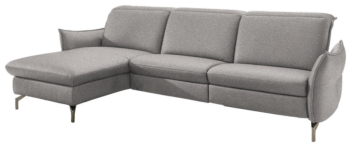 ECKSOFA Grau Flachgewebe Rückenkissen, Schlaffunktion, Rücken echt, Armteilverstellung, Stauraum