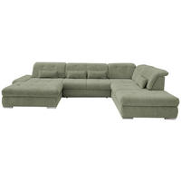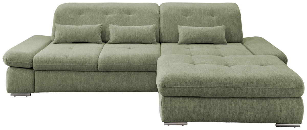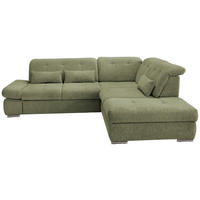 Livetastic ECKSOFA Grün Chenille Nierenkissen, Bettkasten, Schlaffunktion, Rücken echt, Armteilverstellung, Kopfteilverstellung, Sitztiefenverstellung, Liegefläche im Originalstoff
