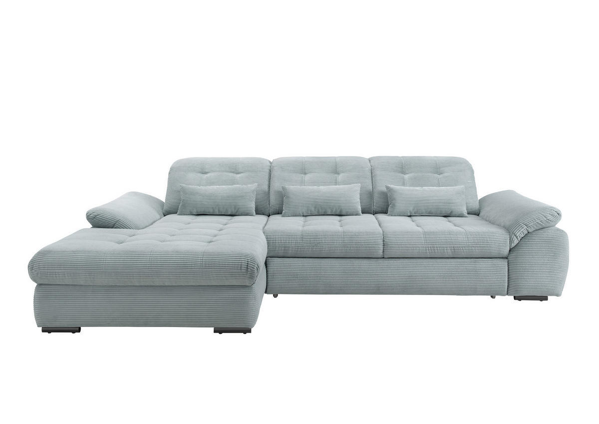 Livetastic ECKSOFA Hellblau Cord Nierenkissen, Bettkasten, Schlaffunktion, Rücken echt, Kopfteilverstellung, Sitztiefenverstellung, Liegefläche im Originalstoff