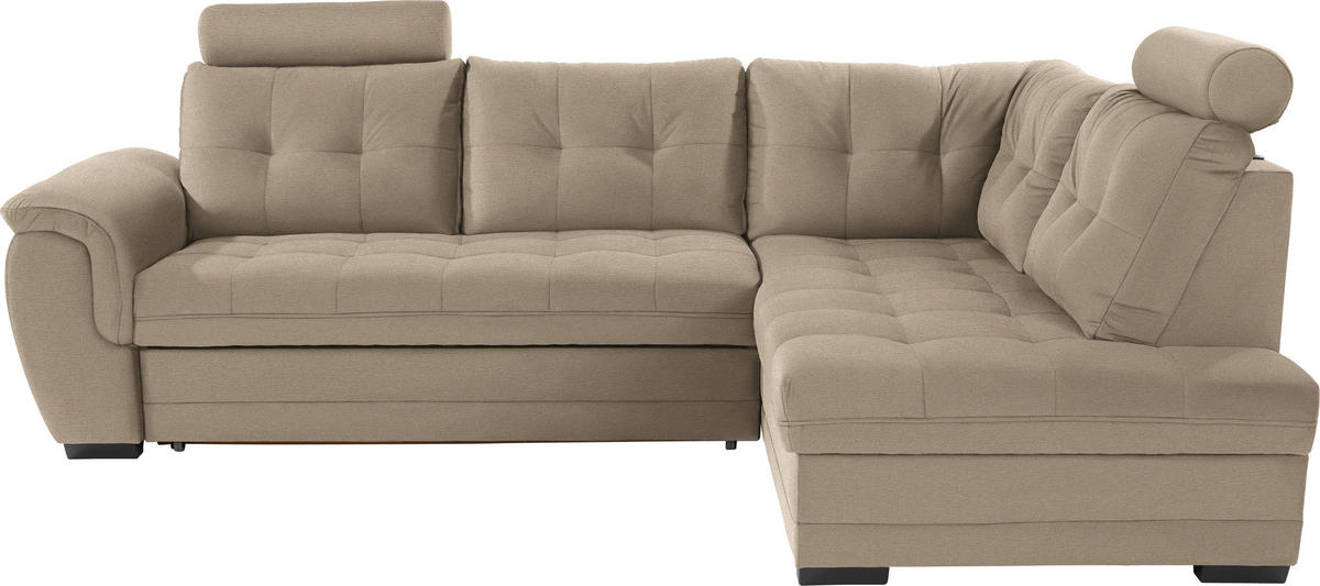 ECKSOFA inkl. Funktion Beige Flachgewebe Bettkasten, Schlaffunktion, Rücken echt, Kopfstütze