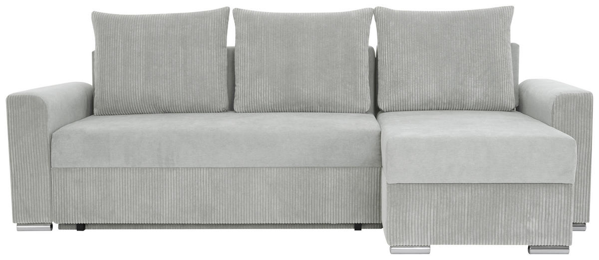 ECKSOFA Hellgrau Cord Rückenkissen, Bettkasten, Schlaffunktion, Rücken echt, Liegefläche im Originalstoff