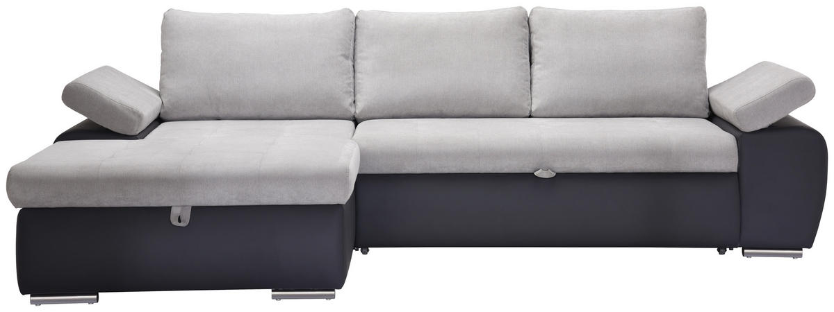 ECKSOFA Grau, Dunkelgrau Webstoff Bettkasten, Schlaffunktion, Kopfteilverstellung, Sitztiefenverstellung