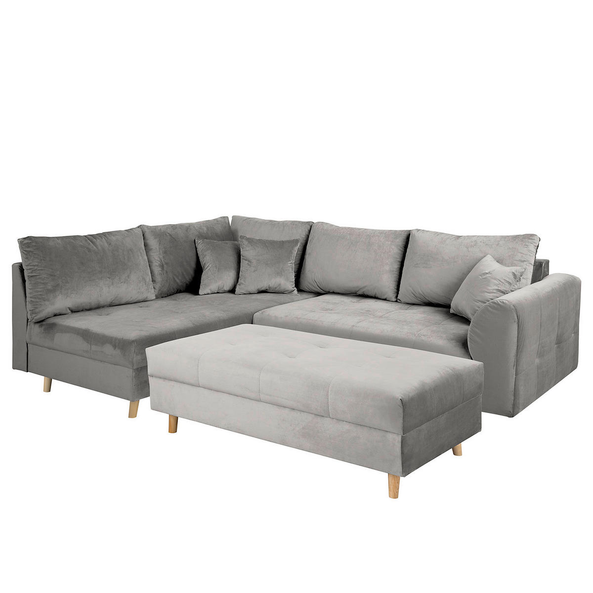 ECKSOFA inkl. Hocker Ariella Grau Samt Rückenkissen, Hocker GrauSchenkel: 161/231 cm1.239,99 €***899,00 €