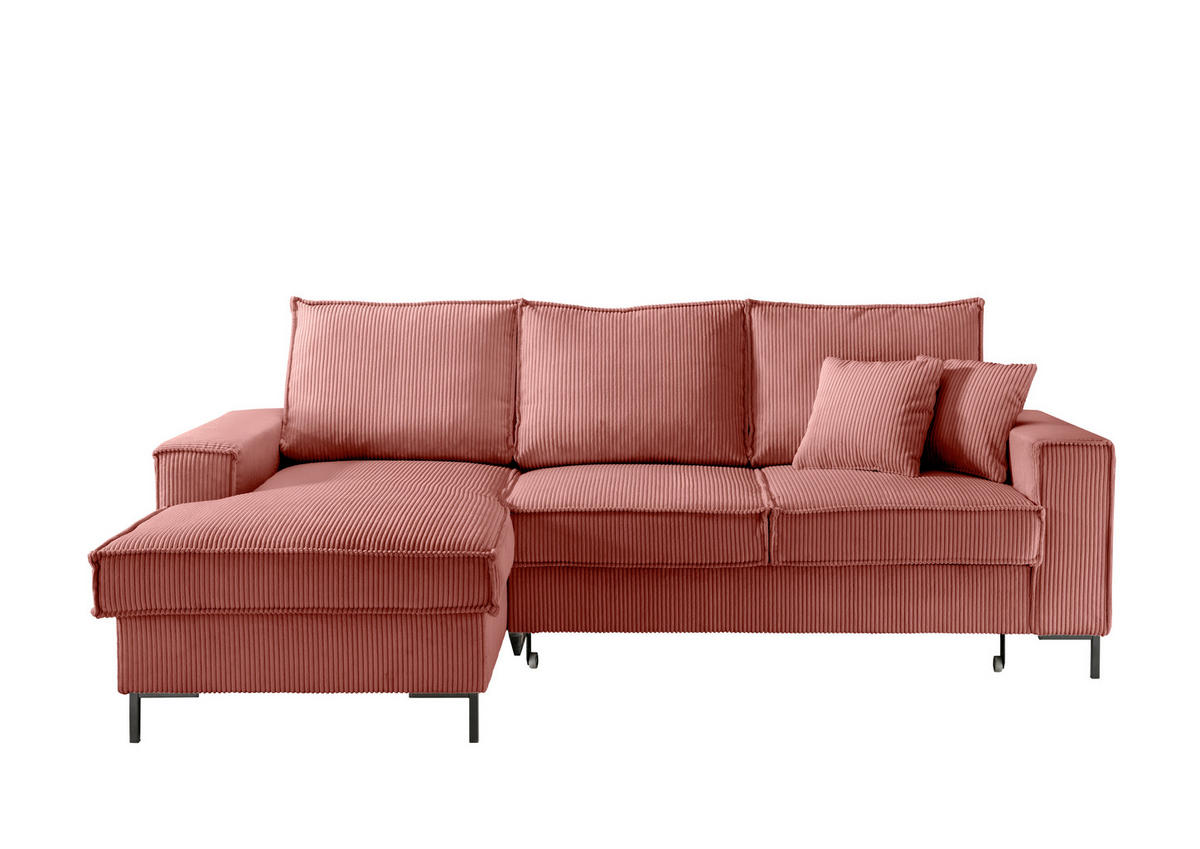 ECKSOFA Rosa Cord Rückenkissen, Bettkasten, Schlaffunktion, Rücken echt, Liegefläche im Originalstoff