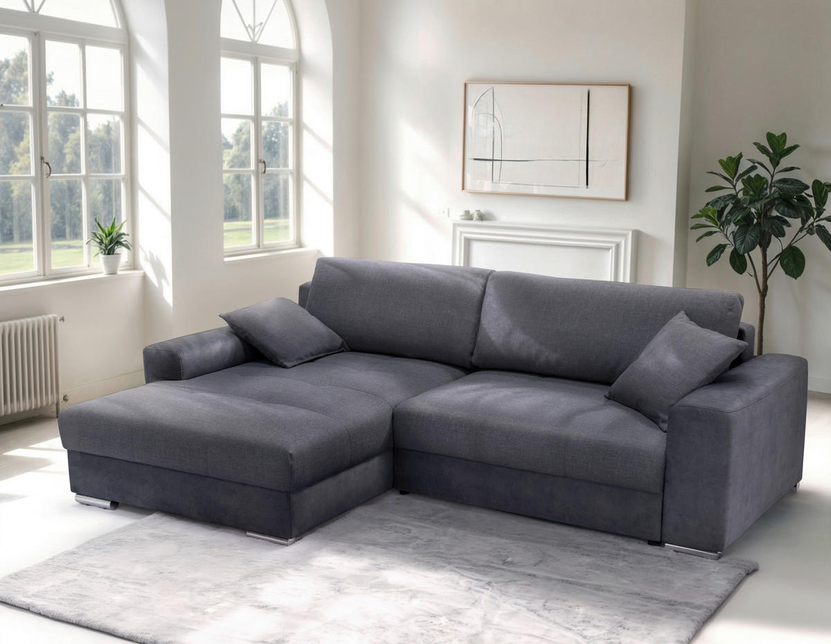 ECKSOFA inkl. Funktion Anthrazit Webstoff Bettkasten, Schlaffunktion, Rücken echt, Kopfteilverstellung, Sitztiefenverstellung