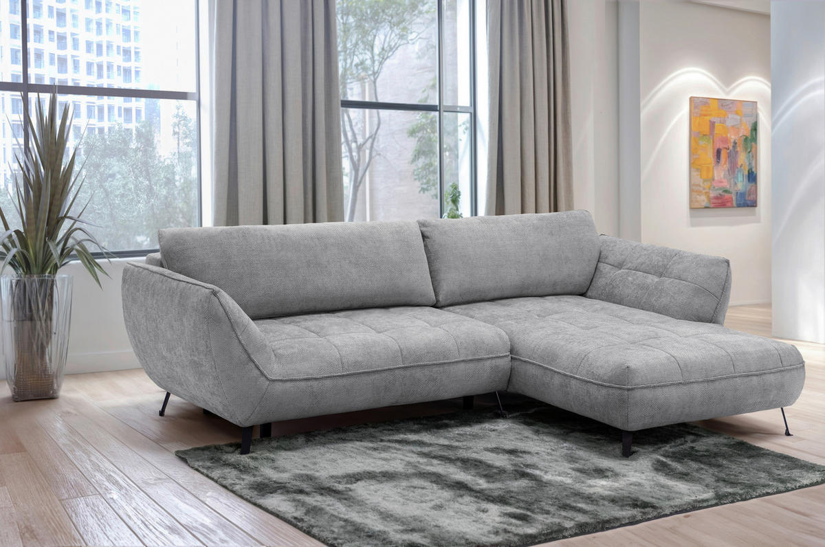 ECKSOFA inkl.Funktionen Grau Webstoff Bettkasten, Schlaffunktion, Rücken echt, Kopfteilverstellung