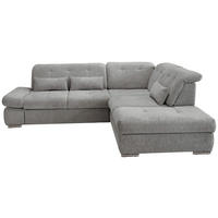 ECKSOFA Grau Flachgewebe Rückenkissen, Schlaffunktion, Rücken echt, Armteilverstellung, Stauraum