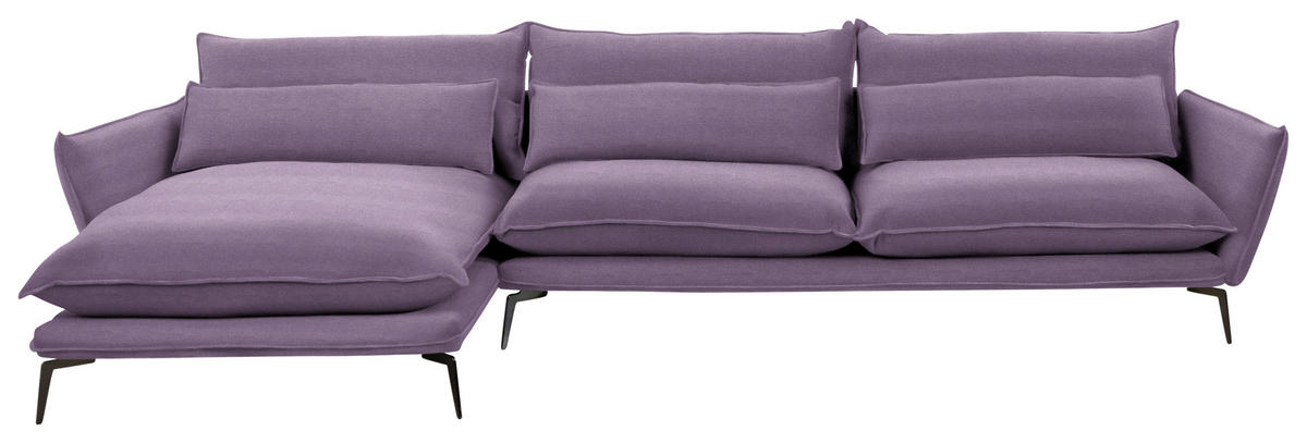 Wohnlandschaft in Lila mit Metall-Füßen - klare Linien für optische Struktur