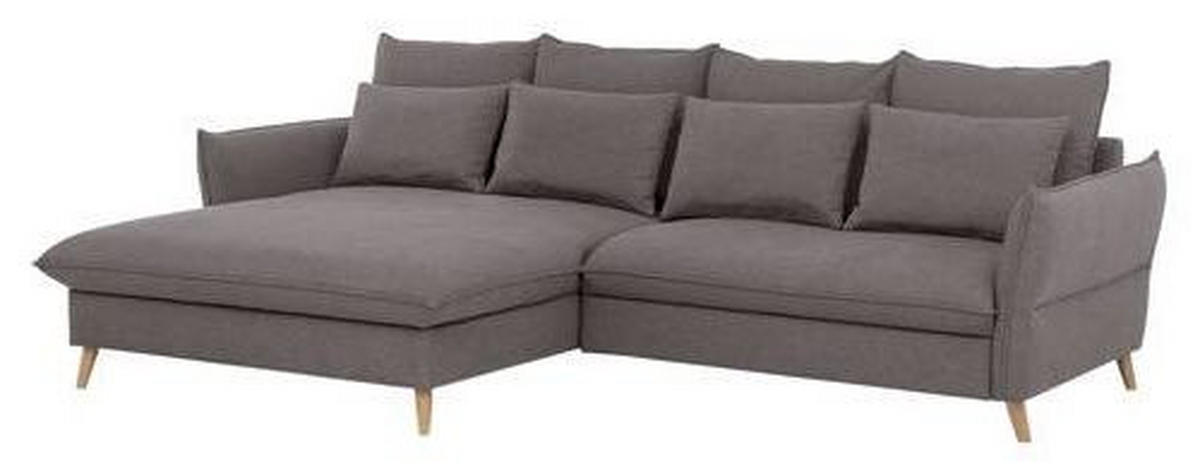 ECKSOFA Grau Flachgewebe Rückenkissen, Schlaffunktion, Rücken echt, Armteilverstellung, Stauraum