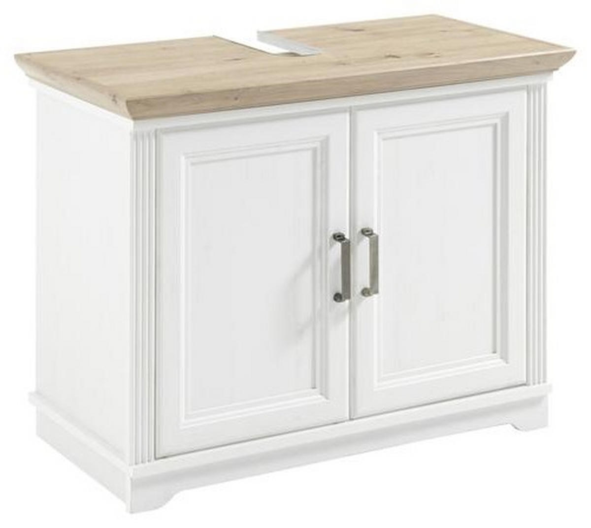 Waschbeckenunterschrank (2-türig) in Weiß und Eichefarben - freundlicher Chic