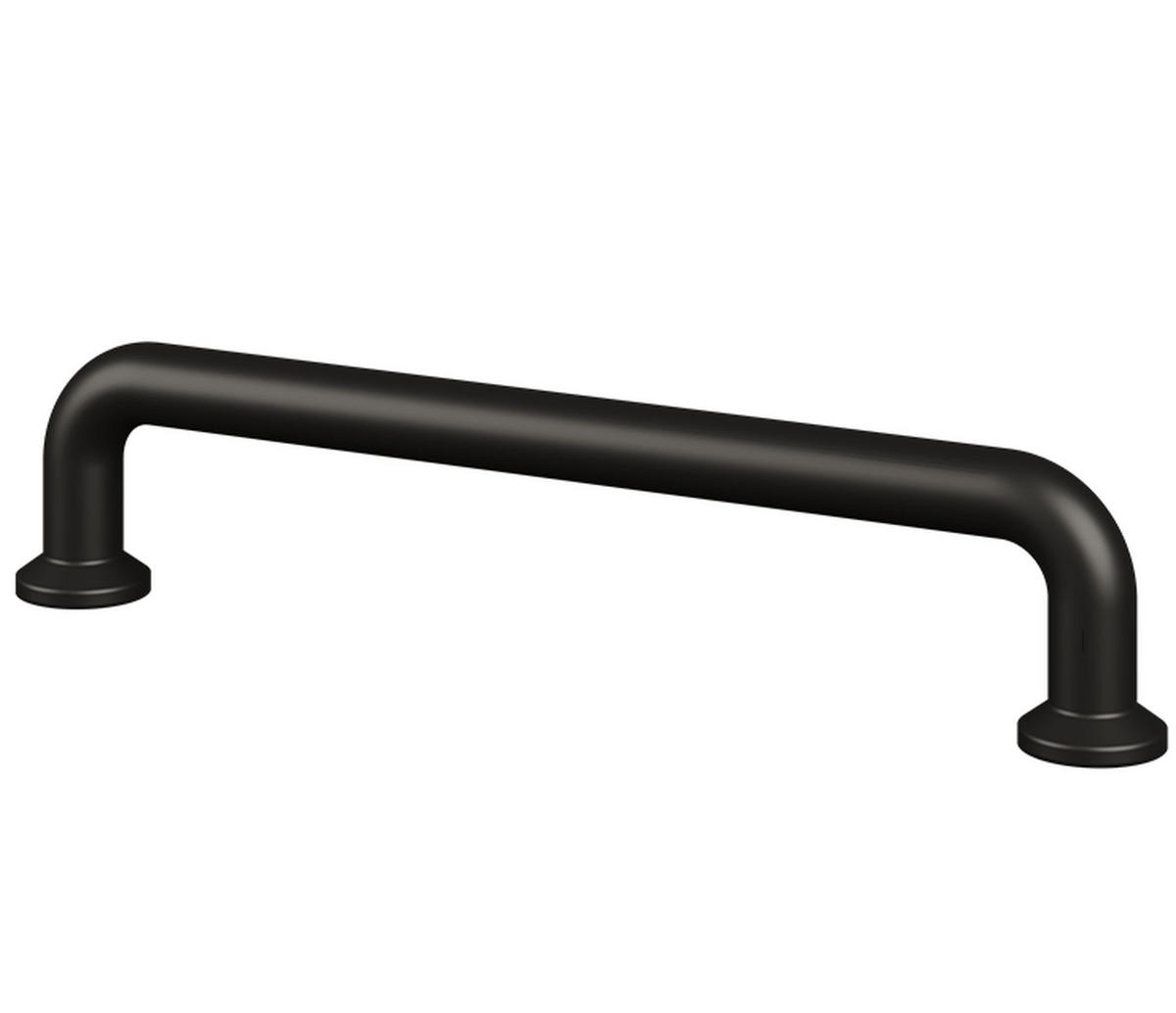 Moderner, runder Bügelgriff aus massivem Metall in Schwarz seidenmatt. Schlichter und schnörkelloser Stil, passt hervorragend zu Küchen, Bad- und Wohnmöbeln. Abgerundete Griffflächen sorgen für angenehme Haptik. Inklusive M4x25 mm Schrauben für 19–21 mm Möbelfronten.