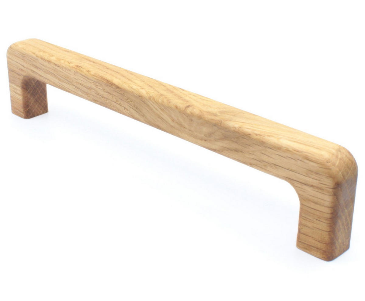 Hoher, moderner Möbelgriff aus massivem Eichenholz mit abgerundeten Kanten. Holz ist ein Naturprodukt und nur für die Anwendung in Innenräumen geeignet. Die Griffe werden nachhaltig in Niedersachsen gefertigt. Jede Bestellung wird extra für Sie hergestellt, dabei wird auf ein einheitliches Farbbild geachtet. Holz, insbesondere Eiche, ist sehr langlebig und hochwertig.