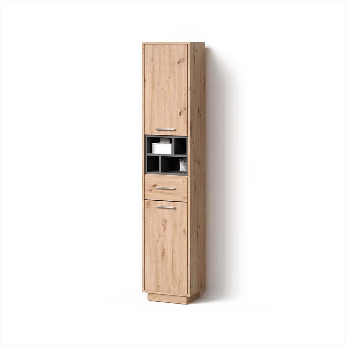 BADSCHRANK Temo Artisan Eiche/Anthrazit 38 x 190 cm mit Türen, Schublade und offenen Fächern - Anthrazit/Eiche Artisan, Holzwerkstoff (38/190/30cm) - Livinity®Livinity®