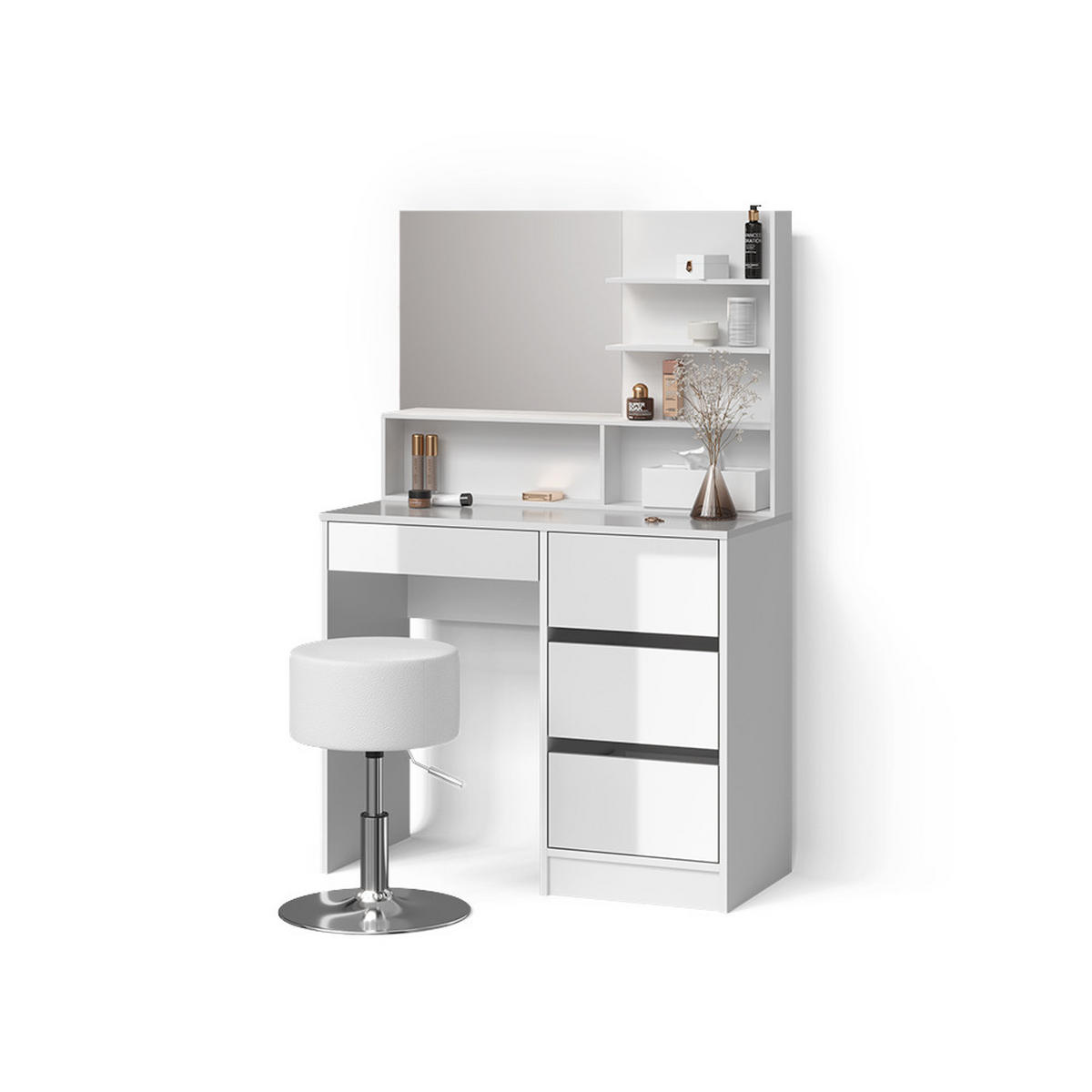 Livinity® SCHMINKTISCH Imola Weiß 90 cm mit Hocker