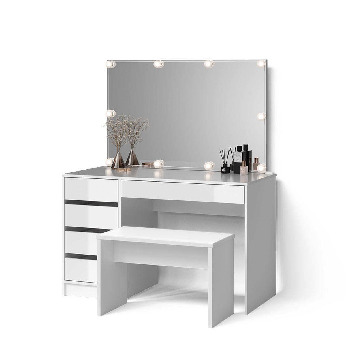 Livinity® SCHMINKTISCH Imola Weiß mit LED Beleuchtung und Bank