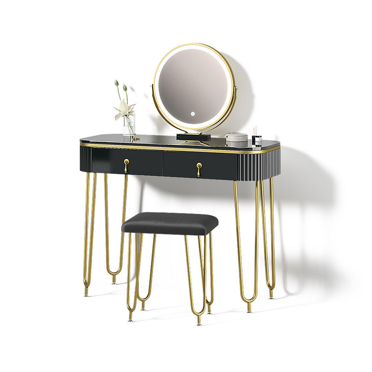 SCHMINKTISCH Isonca Schwarz mit LED Beleuchtung und Hocker - Schwarz, Holzwerkstoff (100/126/40cm) - Livinity®
