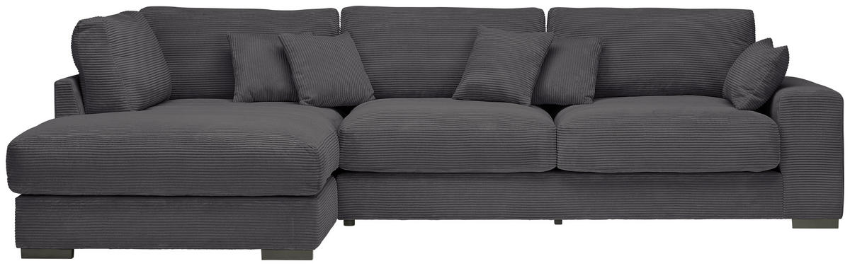 Können Sie sich etwas Besseres vorstellen als auf diesem graphitfarbenen Ecksofa mit Cord-Bezug alles um sich herum zu vergessen?