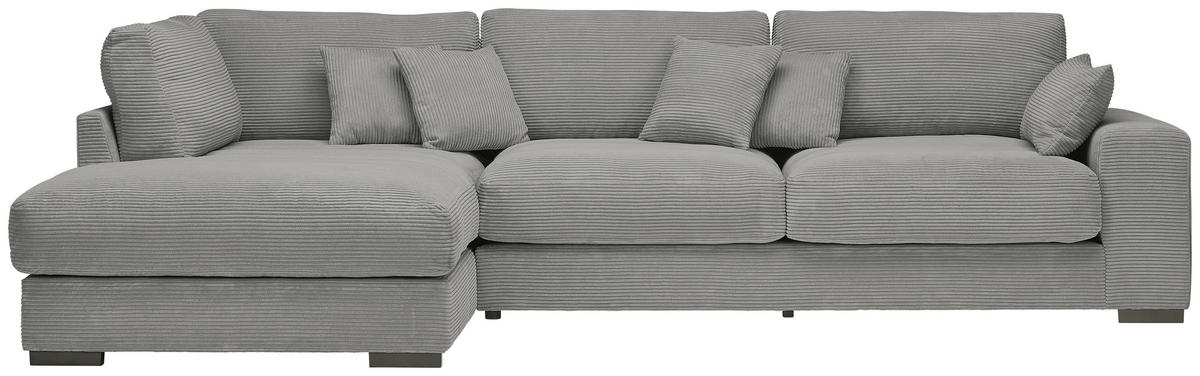Ihr Aushängeschild, was Wohnbehagen betrifft: ein graues Ecksofa mit Cord-Bezug, das es in sich hat!