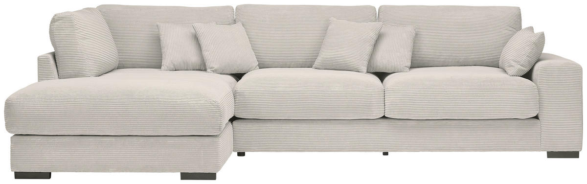 Ecksofa mit Cord-Bezug in Hellgrau: bequem die Seele baumeln lassen
