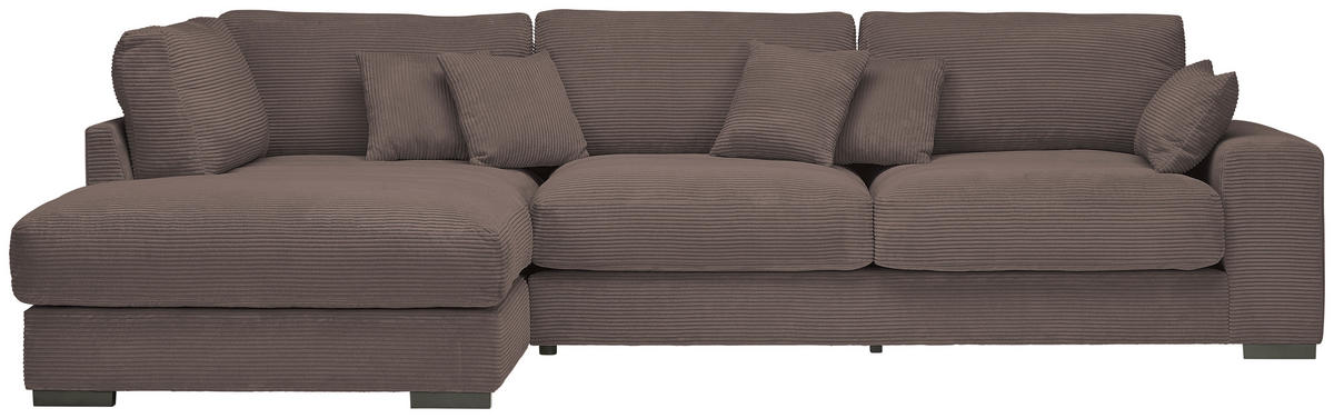 Genießen Sie Ihr Rendezvous mit der wohligen Unbeschwertheit des Seins auf diesem mokka-braunen Ecksofa mit Cord-Bezug!