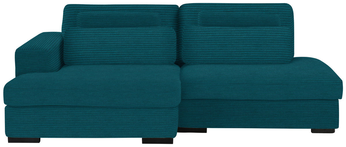 Können Sie sich etwas Besseres vorstellen als auf diesem petrolfarbenen Ecksofa mit Cord-Bezug alles um sich herum zu vergessen?