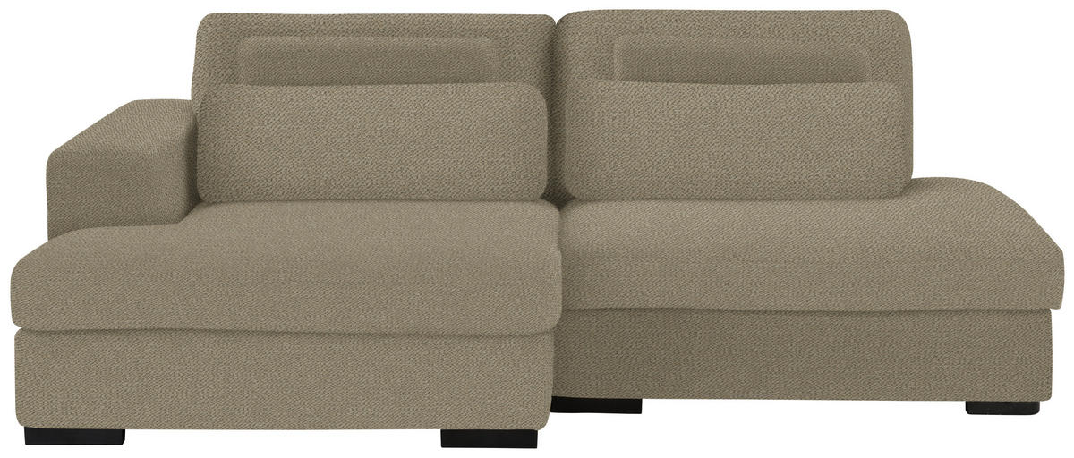 Rein in die Komfortzone: Dieses taupefarbene Ecksofa mit Chenille-Bezug entführt Sie auf ein traumhaftes Terrain zum geruhsamen Durchatmen!