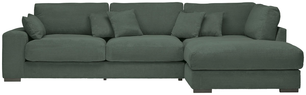 Ihr Aushängeschild, was Wohnlichkeit anbelangt: ein waldgrünes Ecksofa mit Cord-Bezug, das es in sich hat!