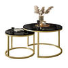 Du magst elegantes, raffiniertes Interieur? Träumen Sie von einer Veränderung in Ihrem Wohnzimmer, haben aber keine Ahnung, in welchem Stil Sie sie arrangieren sollen? Unser CIRI Couchtisch wird Sie sicherlich ansprechen und die Einrichtung jedes Interieurs vervollständigen! Der CIRI Couchtisch ist ein Möbelstück mit einer einfachen, aber interessanten Form und einer äußerst stilvollen Farbkombination. Die Kombination aus Weiß oder Schwarz in Hochglanz- und Goldkonstruktion ist nicht nur eine interessante Ergänzung zur Abwechslung des Dekors, sondern harmoniert auch perfekt mit jeder Inneneinrichtung, insbesondere der im Glamourstil dekorierten. Es wird sicherlich Menschen ansprechen, die Minimalismus und gleichzeitig Original- und Designermöbel schätzen. Die Tische haben unterschiedliche Größen, sodass wir sie leicht untereinander schieben können, um eine originelle Komposition zu erstellen. Es ist auch eine ideale Lösung für Räume mit begrenztem Platz. Die runde Tischplatte besteht vollständig aus hochglänzender MDF-Spannplatte und wird Sie nicht nur mit ihrer makellosen Schönheit, sondern auch mit ihrer guten Haltbarkeit und Schmutzbeständigkeit begeistern. Das Ganze ruht auf einer goldenen Metallbasis, die nicht nur für hohe Stabilität sorgt, sondern ihm auch ein modernes und elegantes Aussehen verleiht. Maße: Großer Tisch: