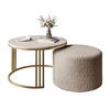 Lookway COUCHTISCH mit Hocker LORI Hochglanz gebürstetes Gold/Schwarz glänzend/Coral 50