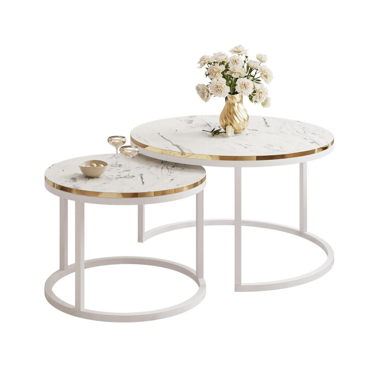 Couchtisch Set SOLEIL 2in1 – Marmor-Optik & Gold