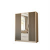 Lookway KLEIDERSCHRANK NELA, dreitürig mit Lamellen und Spiegel, 155 cm, Artisan/Schwarz