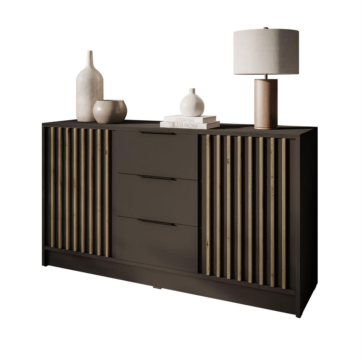 Lookway KOMMODE NELA, zweitürig mit Lamellen, Graphit/Artisan