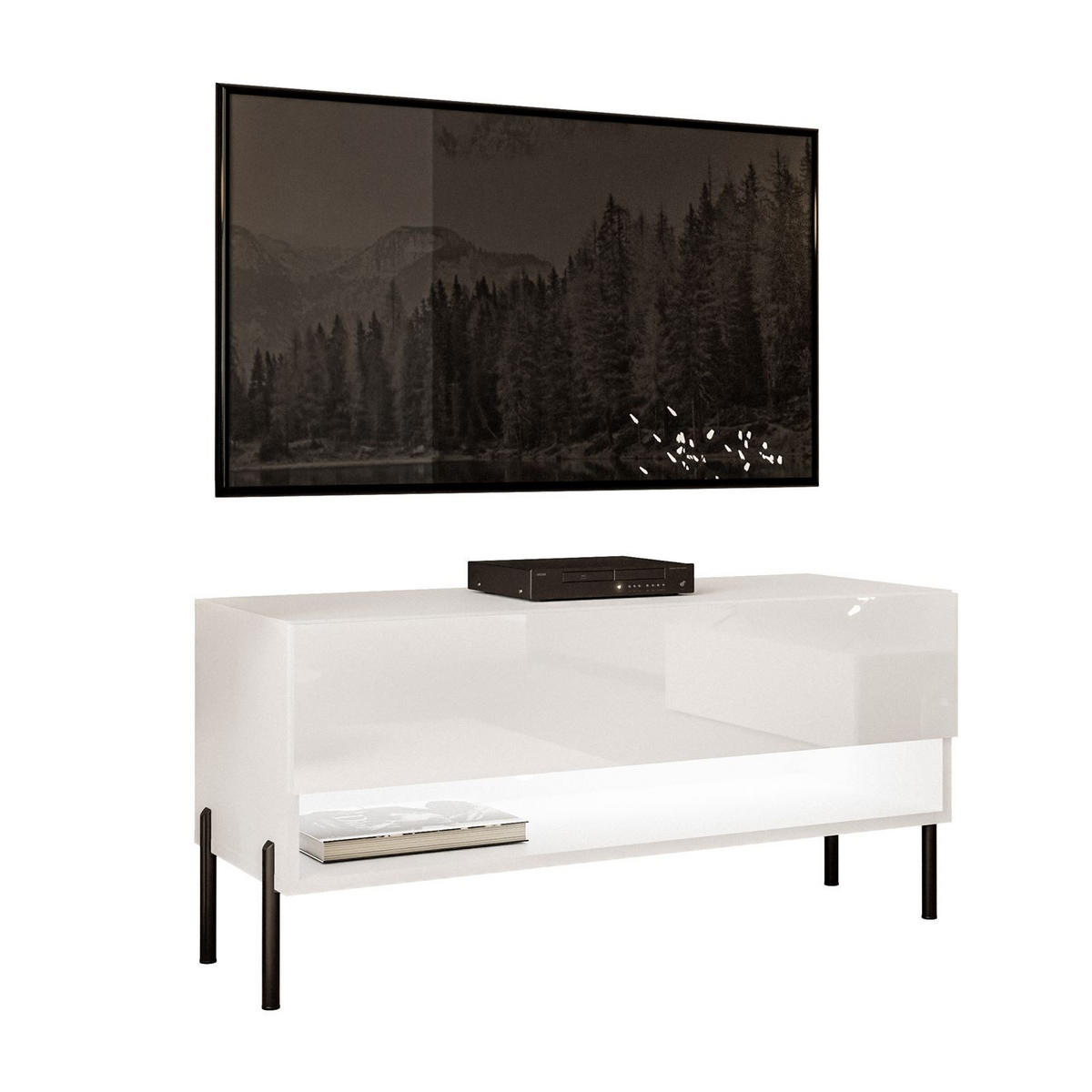 Lookway LOWBOARD RTV Schrank CALANTE 90 cm auf geraden schwarzen Beinen