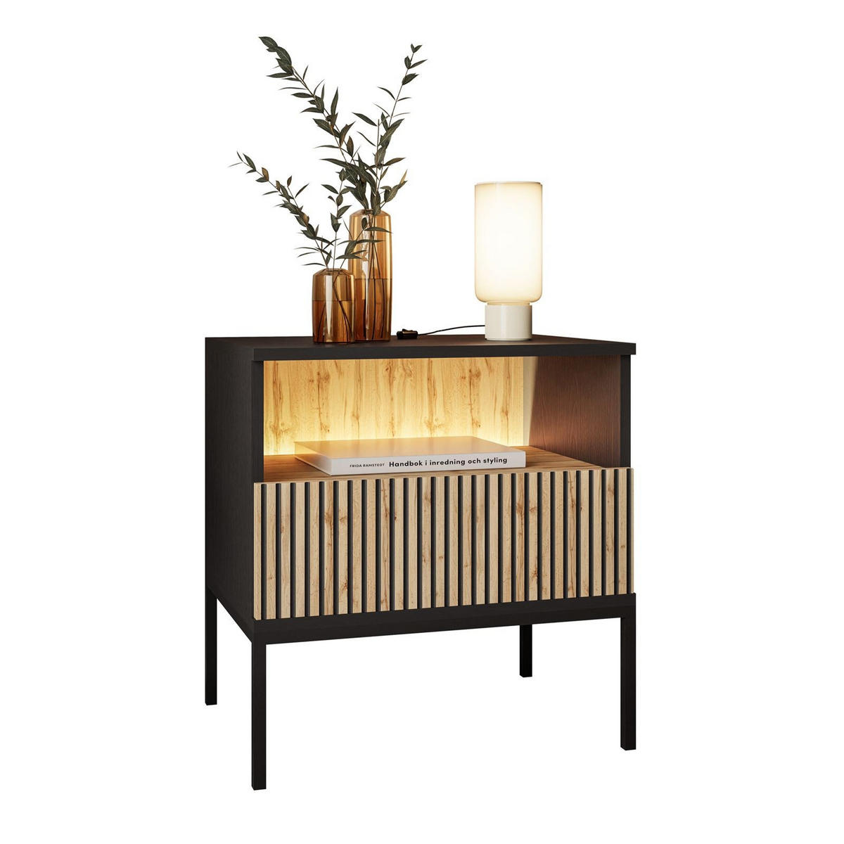 Lookway NACHTTISCH ECLIPSE S54 mit Beleuchtung,Schwarz Eiche Wotan