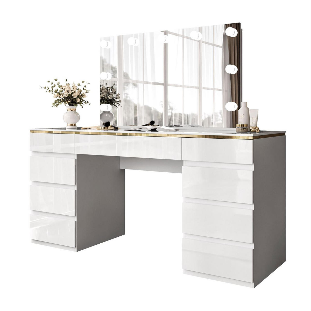 Schminktisch AURORA DOUBLE – Weiß Hochglanz & Gold