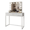 Wenn du von einer persönlichen Oase zu Hause träumst, in der du dich auf besondere Weise pflegen kannst, haben wir die perfekte Lösung für dich – den modernen und stilvollen Kosmetiktisch BLANCO LOFT ELITE! Seine Vielseitigkeit macht den Kosmetiktisch BLANCO nicht nur zu einem tollen Geschenk für Teenager, sondern er passt auch perfekt in professionelle Kosmetiksalons. Das außergewöhnliche Design macht ihn für private Räume sowie für Studios geeignet. Der Kosmetiktisch BLANCO ist mit zwei Schubladen ausgestattet – ideal für alle, die Ordnung und Ästhetik in ihrer täglichen Pflegeroutine schätzen. Alles Nötige findet seinen Platz und ergibt ein harmonisches Gesamtbild. Besonders hervorzuheben ist der große Spiegel mit 12 LED-Leuchten in neutraler Farbtemperatur, der perfekte Beleuchtung für präzises Make-up und Hautpflege bietet. So ist jedes Detail optimal sichtbar und das Make-up gelingt professionell. Maße: