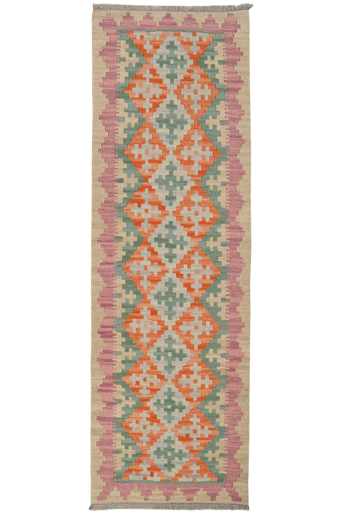 Looma HANDWEBTEPPICH Kelim Gashgai Grün 195/62 cm Schurwolle
