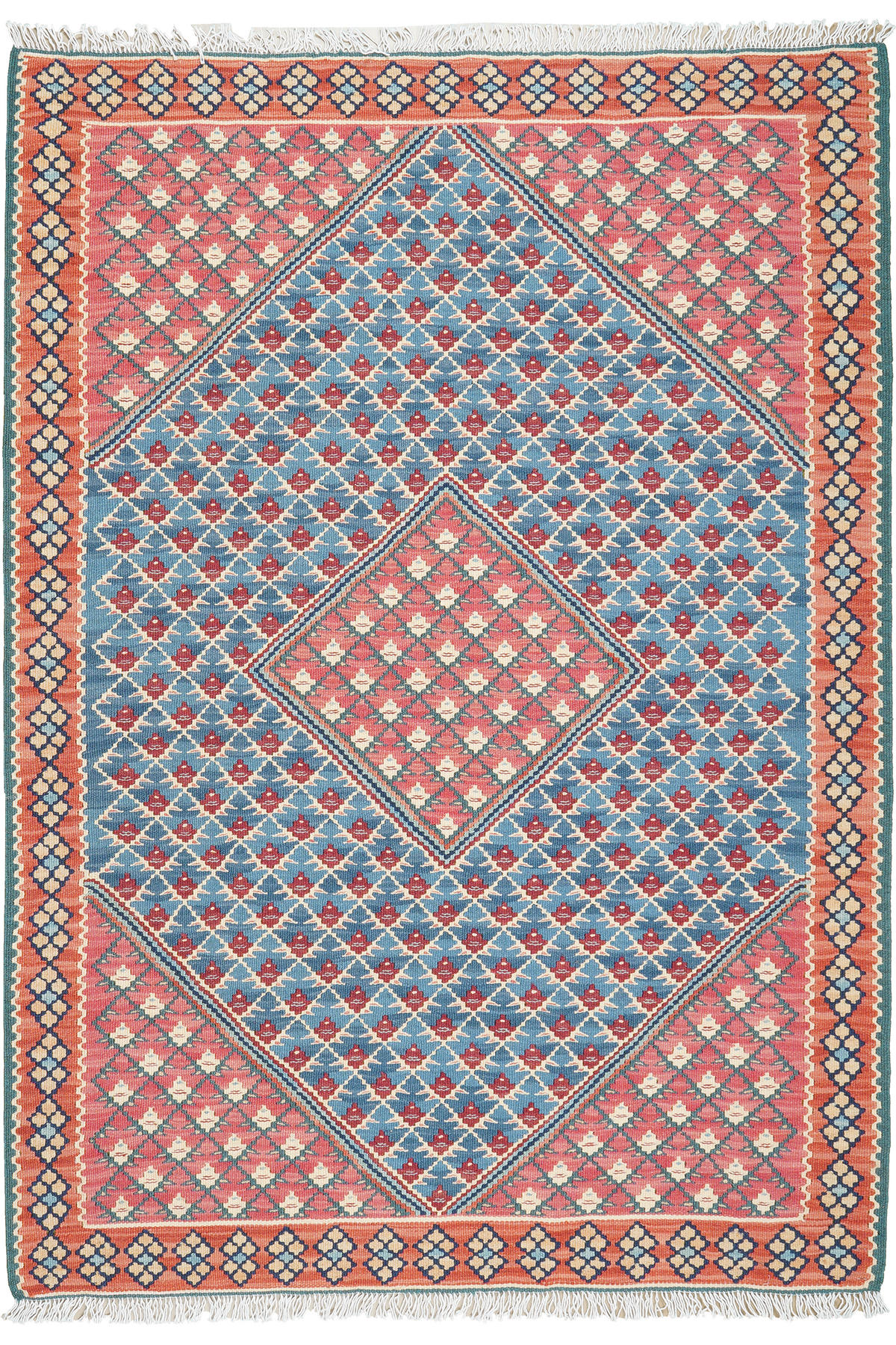 Looma HANDWEBTEPPICH Kelim Senneh Blau 150/107 cm Schurwolle