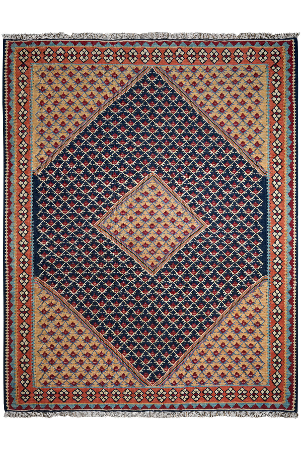 Looma HANDWEBTEPPICH Kelim Senneh Blau 193/153 cm Schurwolle