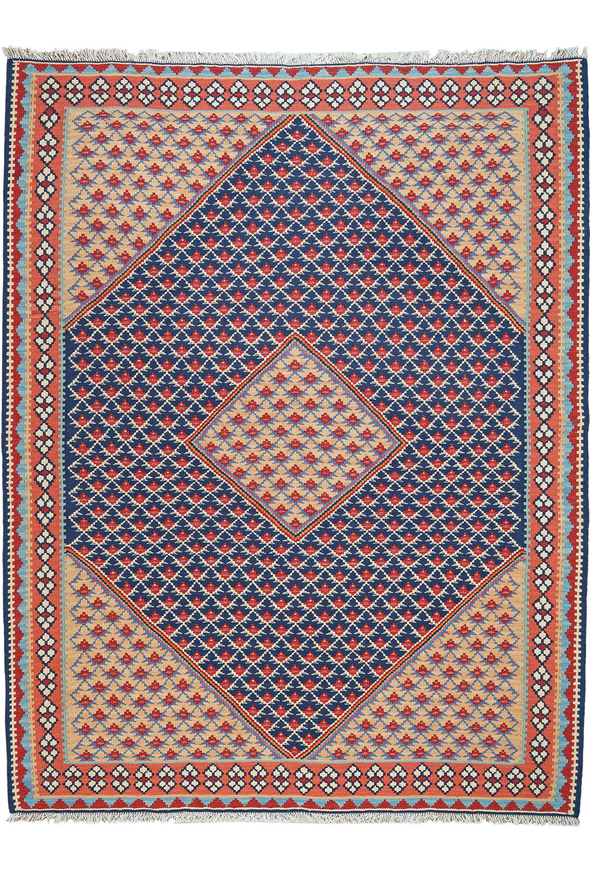Looma HANDWEBTEPPICH Kelim Senneh Blau 195/152 cm Schurwolle