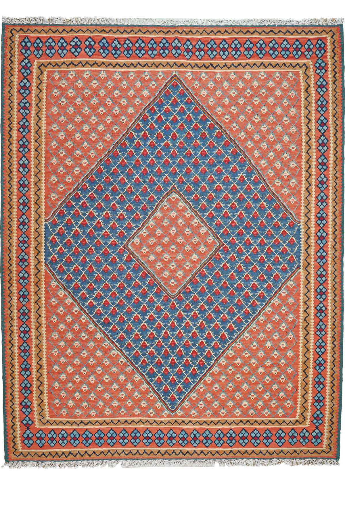 Looma HANDWEBTEPPICH Kelim Senneh Blau 198/154 cm Schurwolle