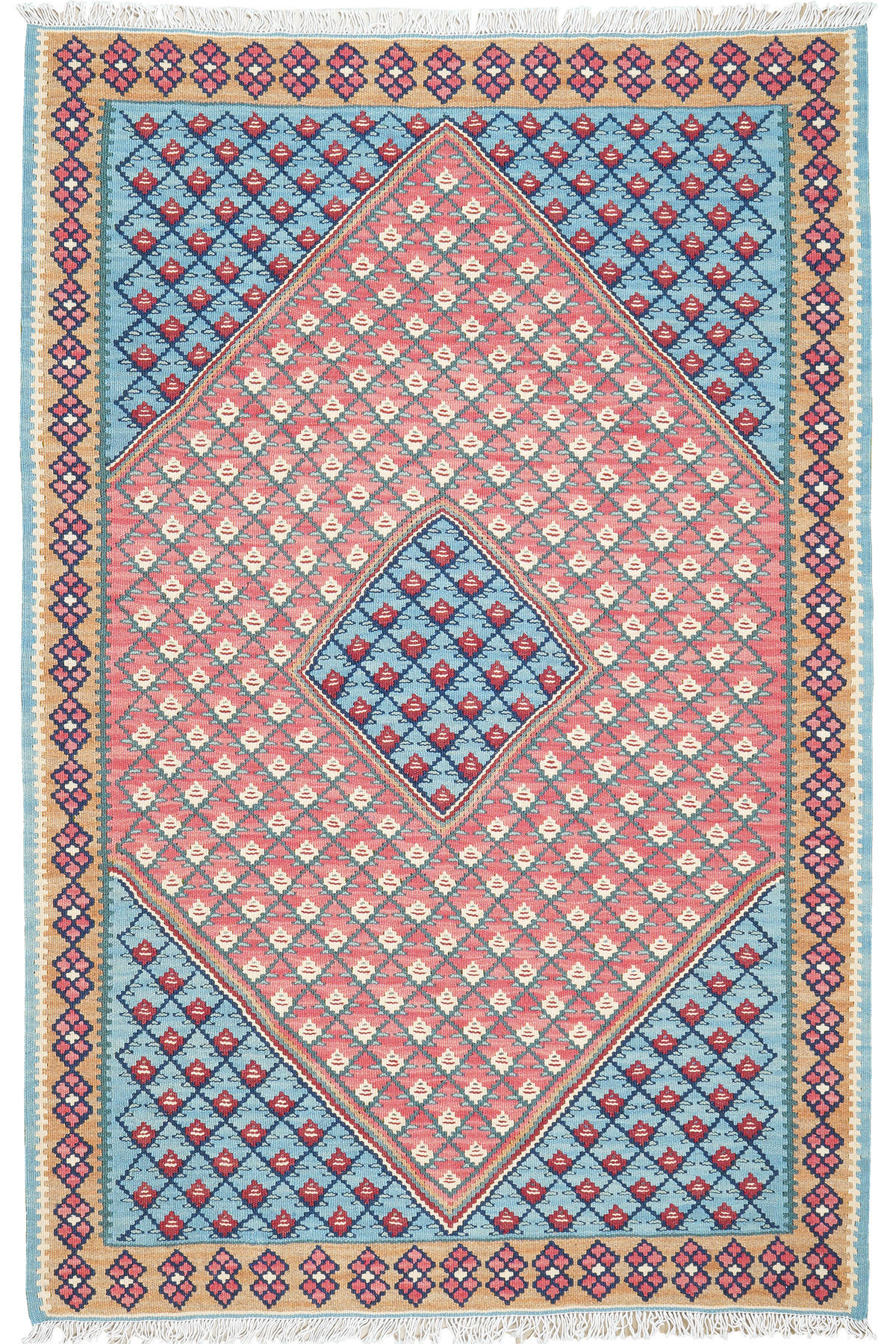 Looma HANDWEBTEPPICH Senneh Kelim Blau 153/100 cm Schurwolle