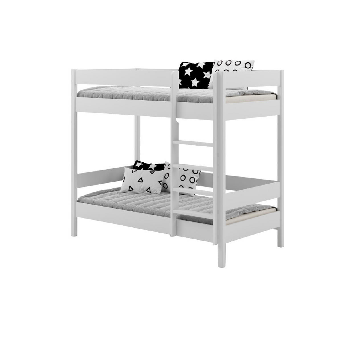 Konstruktionselemente aus astfreiem Massivholz und Verbindungselemente aus zertifizierter MDF-Platte. Das Holz ist mit getestetem, umweltfreundlichem Lack auf Wasserbasis lackiert. Getestet, damit Ihr Kind sicher schlafen kann.